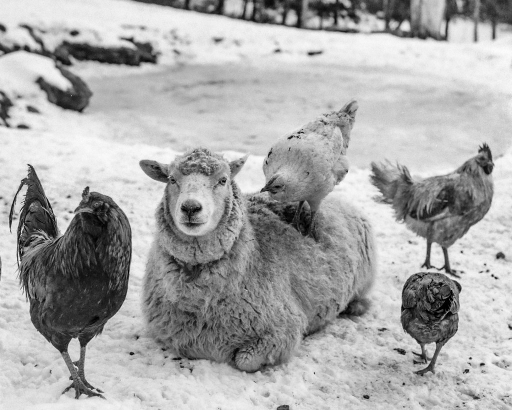The place was beautiful—acres of snow-dusted fields, crisp winter air, and some of the friendliest animals I’ve ever met. The donkey was getting a little too friendly with my wife, the goats were competing for attention, and the Highland cows and bulls were lazily chewing hay while the sheep tried to nap in the corner.